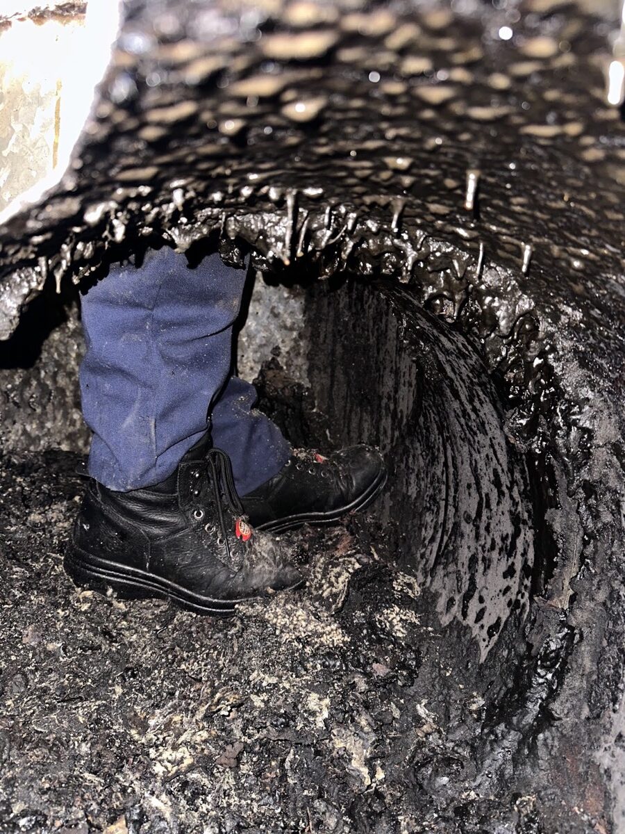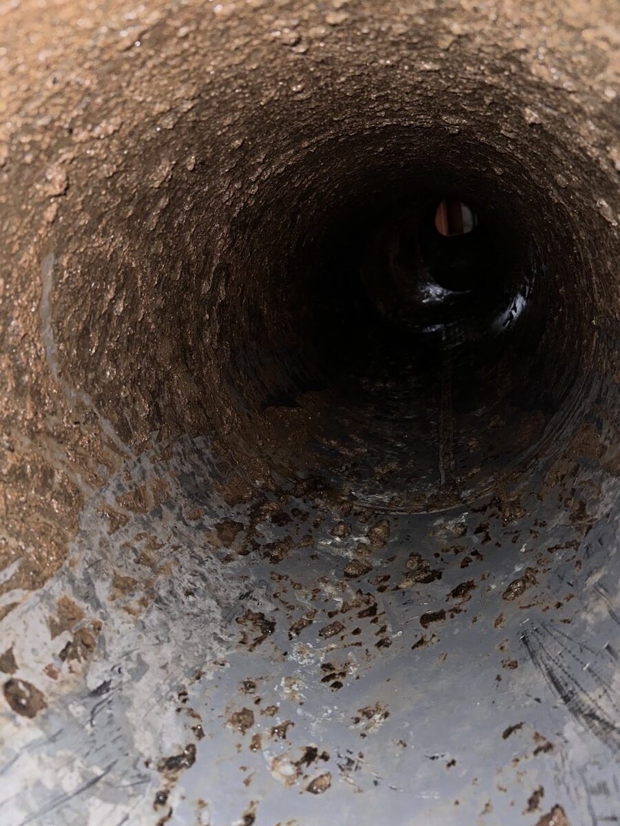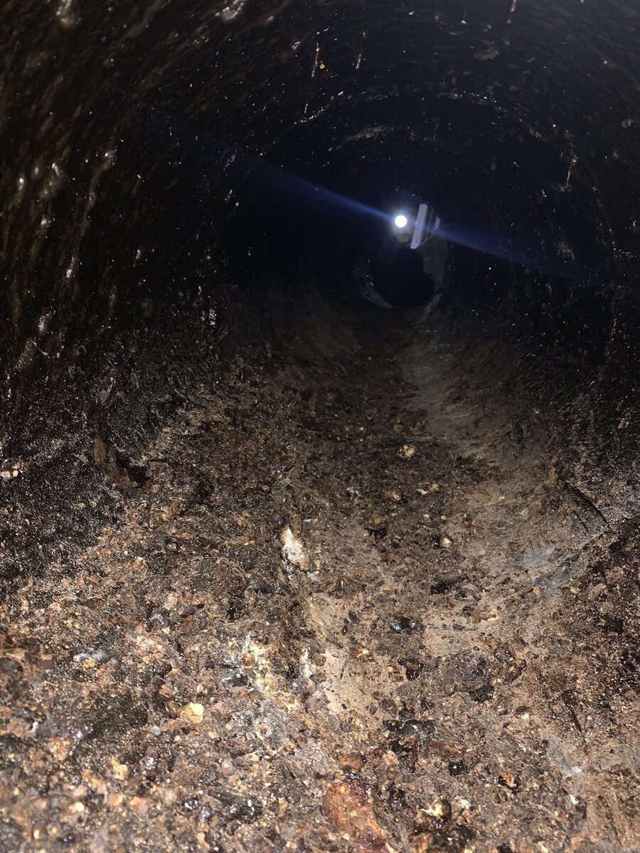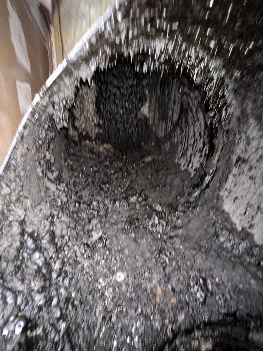 Our team arrived at the site, prepared for the daunting task ahead. We discovered that the grease buildup in the system was so severe that it had become rock-hard, requiring us to chisel it out before we could proceed with our standard cleaning process.